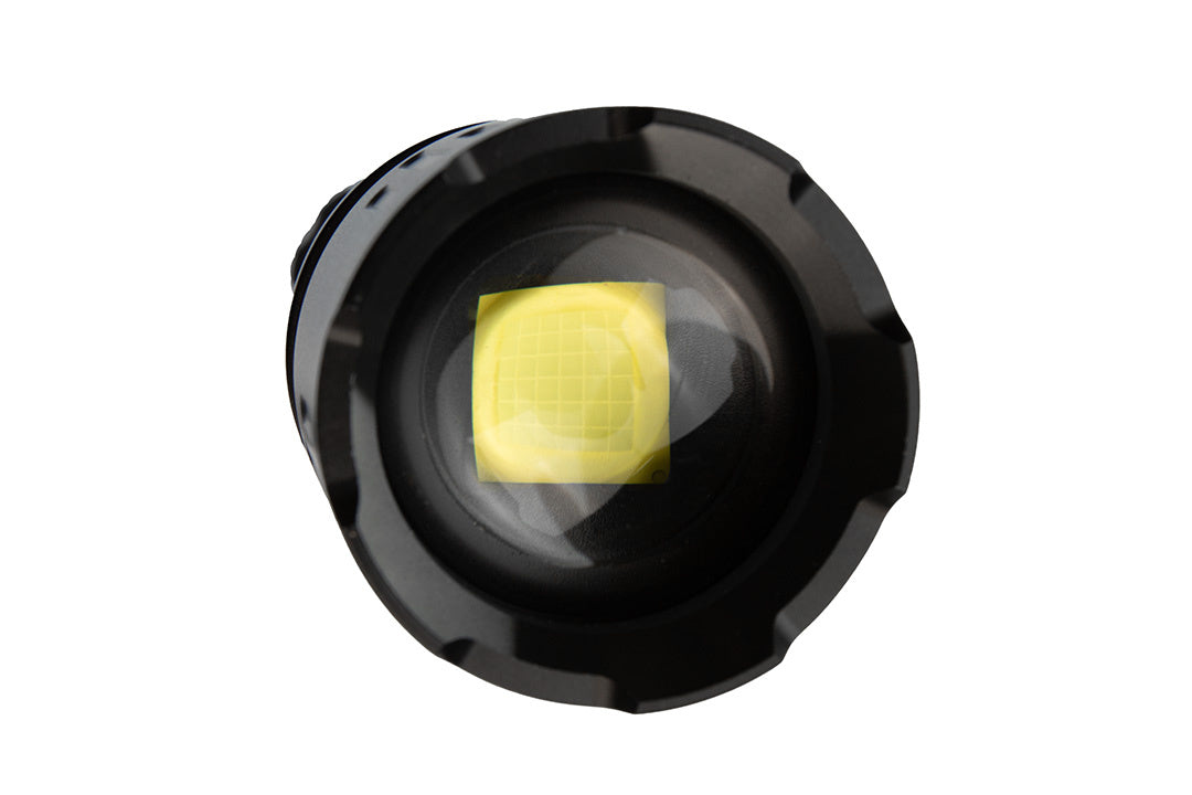 Žibintuvėlis turi išgaubtą lęšį ir reguliuojamą šviesos spindulio fokusavimą – ZOOM .